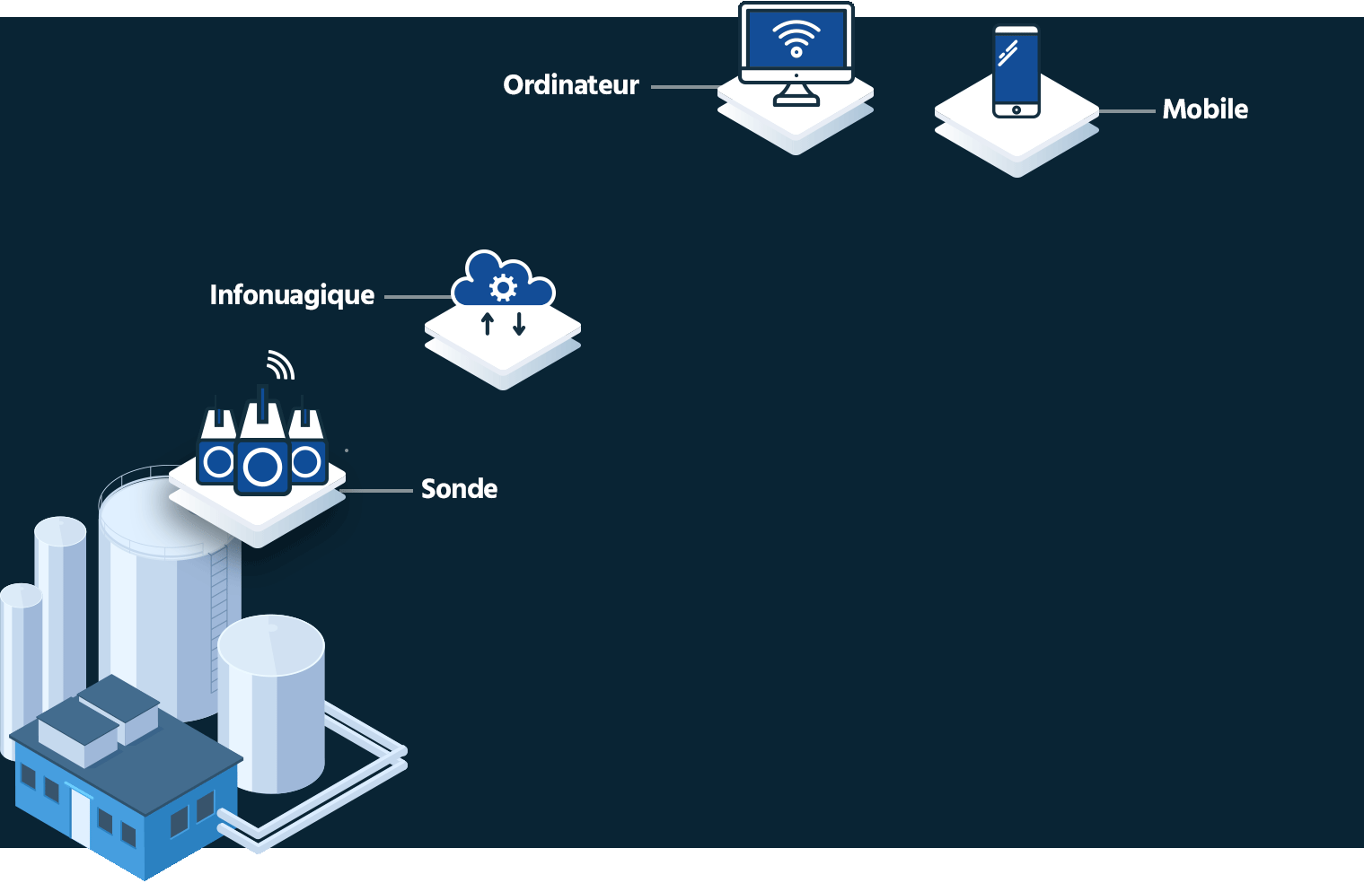 Tout commence par l’installation d’une sonde très sensible et précise sur chacun de vos réservoirs, qu’ils contiennent du liquide ou du solide. Une fois connectée aux réservoirs, la sonde transmet les inventaires des matériaux liquides et solides en temps réel. Il est alors possible de consulter les niveaux sur votre ordinateur ou en version mobile à n’importe quelle heure de la journée.